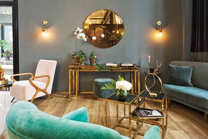 "El dorado estuvo y estará presente en el mundo del arte y el diseño, desde la época barroca y los movimientos art nouveau y art deco. En la cantidad justa aporta una pincelada limpia y atrapante en el espacio, dando personalidad y elegancia", dice Gabriela López Monzón, diseñadora y fundadora de Cest MOI. En ambientes amplios, el dorado puede estar presente en muebles auxiliares, o detalles en patas y estructuras de mesas o sofás, en iluminación, paredes e incluso en cielorrasos. Por el contrario, en ambientes más chicos, el dorado solo debe incorporarse en detalles, como espejos, lámparas o textiles. "La base del espacio deben ser tonos neutros, los detalles brillantes deben usarse para romper la monocromía en los fondos claros o dar luminosidad en los oscuros", sugiere. La combinación con otras texturas, como mármoles pulidos, terciopelos y madera oscura, generan una atmósfera especial. Para un efecto menos elegante, se puede combinar con maderas claras o tejidos naturales como linos o rafias. Además, otorga un equilibrio cromático a colores como el verde, azul y rosa. Se puede utilizar en cualquier ambiente, hasta los menos pensados, como cocinas y baños, ya sea en grifería o iluminación.