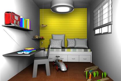 - Sacarle el mayor provecho posible a cada centímetro cuadrado. Generar un espacio que el niño sienta como propio y que resulte útil como rincón de juegos, zona de estudio y de descanso.
