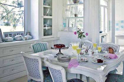 * Para distribuir los muebles del comedor, lo ideal es comenzar por la mesa como eje principal. Existe una convención que, por razones bastante comprensibles, indica que el centro de la habitación es el lugar correcto para ella. No obstante, cuando el ambiente es tan pequeño que no sería posible circular alrededor, lo mejor sería apoyarla en la pared, solución que puede complementarse con un banco debajo.