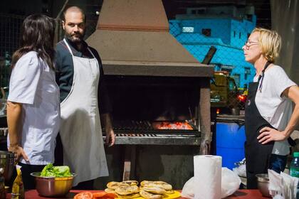 Como no tienen artefactos de cocina ni hornos, se arreglan con una parrilla y fuego. En esa parrilla se cuece casi todo lo que después se va a comer. Ya sea unas hamburguesas hechas con carne picada regalada por un restaurante de un amigo, y panes que se preparan y cuecen en el momento sobre la misma parrilla. A veces, un cocinero amigo, consigue un anafe portátil y ese día amasan empanadas y hacen el relleno como corresponde, para después freírlas con cuidado profesional. Las clases llegan a la exquisitez de enseñarles el corte de vegetales en brunoise.