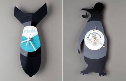 Puede que te gusten o no, pero hay algo indudable (al menos eso creo yo) y es que estos relojes creados por Pavel Sidorenko son muy originales . Realizados con discos de vinilo cortados con láser, el diseñador realizó una serie de piezas únicas con formas familiares: pájaros, conejos, pingüinos, etc.
