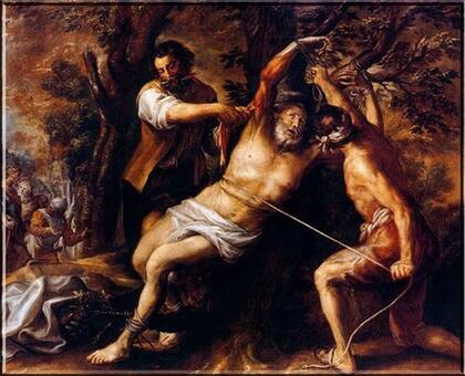 Al desollar a Bartolomé (arriba) el verdugo coloca su mano entre la carne y la piel para separar el tejido mientras mantiene el cuchillo entre los dientes