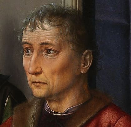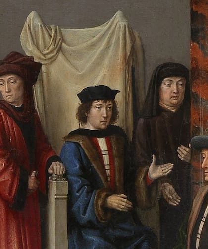 Gerard David, el pintor holandés que en 1498 recibió el encargo de pintar esta historia, hizo un trabajo excepcional al retratar la perplejidad y el terror del rostro de Sisamnes al escuchar su condena. Detalle:
