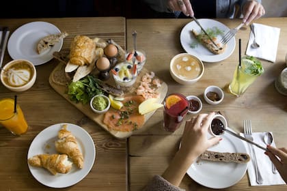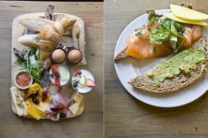 Salado y dulce. Café con croissants, pain au chocolat y variedad de panes para acompañar con manteca y dulces o bien salmón, langostinos, guacamole y huevos. Como en las vacaciones, acá todo está permitido. Y se disfruta con tiempo y tranquilidad.