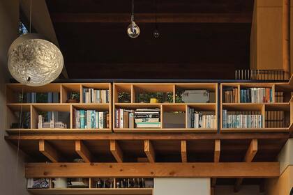 En la planta baja se encuentra el baño y una cocina-comedor abierto a la sala de estar. El nivel superior está el dormitorio desde donde se accede a la biblioteca que deja pasar la luz natural y, al mismo tiempo, ofrece privacidad aún estando en relación directa con la sala de abajo.
