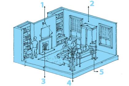 * CHIMENEA. Se trata de un lugar donde los apliques se convierten en puntos focales y al mismo tiempo contribuyen con la luz ambiental, proyectándola de manera rasante. Otra opción es colocar allí una obra de arte iluminada por un foco que la destaque sin dañarla.