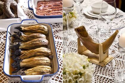 Junto a su socio, Javier Ickowicz, para el menú de Mishiguene el chef Kalika pensó en reinterpretar las recetas clásicas de la cocina judía. Para esta mesa preparó: