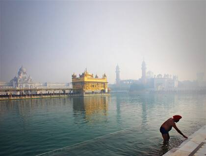 Hoy, el sijismo es la quinta religión más numerosa del mundo y el Templo Dorado de Amritsar, ciudad al norte de India, es su meca. Rodeado de torres, balcones, arcos y cúpulas al mejor estilo Aladdin, el santuario emerge en el centro de una enorme pileta de agua que los fieles llaman amrit, es decir, "el néctar de la inmortalidad". Se calcula que más de cien mil personas vienen diariamente; ahora son ya las nueve de la noche y todavía veo a familias y grupos de amigos recorrer el complejo. Unos se arrodillan al lado del agua y se inclinan hasta tocar el piso con la frente. Otros miran atentos a las pantallas que exponen los preceptos esenciales del sijismo. Casi todos se sacan selfies con sus celulares. Sólo unos pocos se animan a sumergirse en ese néctar de la inmortalidad que, imagino, debe estar al borde del congelamiento.