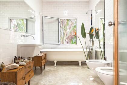 Ecléctico con toques retro | Con dos mesas de luz compradas en un mercado de pulgas y una pileta de lavadero bien grande y súper económica, se logró una estética de mixtura que no desentona. El piso es de cemento alisado, neutro y actual.