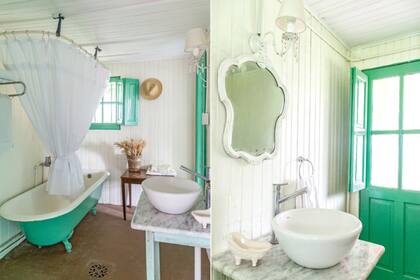 Aires de campo | La idea fundamental al actualizar este baño fue hacerlo súper cálido. Se conservó la bañadera antigua, pero se reemplazó el lavatorio por una bacha sobremesada apoyada en mármol de Carrara.