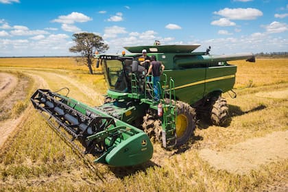 La imagen es muy National Geographic: los arrozales de Asia, con mayoría de mujeres cubiertas por los típicos sombreros cónicos (elaborados, claro, a base de la paja del mismo arroz), cosechando las espigas maduras a mano, con sus pequeños pies hundidos en el agua. En Argentina, esto es muy distinto. "Allá hay pequeñas propiedades familiares; acá son superficies de cientos hectáreas", dice Enrique.