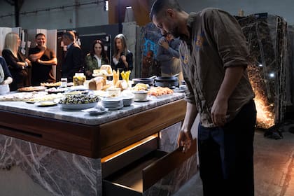 Allí, los invitados se reunieron alrededor del banquete desarrollado por la chef Juliana López May, que emerge en distintos sectores del showroom. Los sabores italianos se entrelazan con las delicias del Norte argentino. “Es un aperitivo, o una picada, un copetín ítalo-argentino. La idea siempre fue hacer algo muy simple, muy autóctono y real. Todo sobre un soporte que es una mezcla de piedra y estructuras simples, de buen gusto y con el concepto de menos es más. Con ese eje armamos una picadaza. La idea era que puedas ir recorriendo y probando sabores distintos, rendir honores a esta gran mesa”.