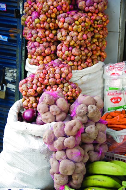 El cocinero recorre el mercado. Habla con las vendedoras, se tienta con lo nuevo de cada cajón y carga una bolsa para su restaurante. Sobre los papines dice: "El sabor y la textura son distintos a las papas comunes y diferentes entre sí. Hay algunas ásperas como arenosas. Se lavan con agua y una esponjita para sacarles la tierra. Las oca, más blanditas, son ideales para puré. Se comen con cáscara porque no se pueden pelar. Hay dulces y amargas. Mi preferida es la imilla, rosadita, que se come como un pancito, caliente y un poco humeante. Hay que comprar todo el colorido de papines que se encuentre".