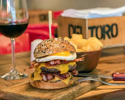 En cualquiera de sus tres locales, con la compra de una hamburguesa la media pinta viene de regalo. Podés elegir entre alguna de las diez variedades de siempre o aprovechar la especial del mes: la Gran Deltoro. Viene con queso cheddar, panceta crocante y huevo, el doble medallón de carne está hecho de picaña y asado, y el pan es de brioche con semillas ($360, incluye papas rústicas).