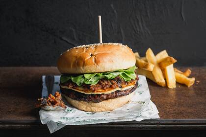 A cargo del chef Sebastián Levy Daniel, en Brandon también son bienvenidos los comensales veganos con una edición de hamburguesa de garbanzos, cebolla morada y especias. Viene con tomate fresco en rodajas, lechuga y salsa tahini. El pan es integral y sin lácteos. Se sirve con papas fritas y curryketchup ($350).