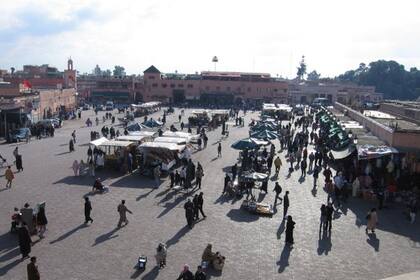 Es una sorprendente plaza seca situada en el corazón de la Medina de Marrakech. Su nombre significa "Reunión de los difuntos" y antiguamente era el lugar en que se realizaban las ejecuciones públicas y se exponían las cabezas de los decapitados ante todos los que habitaban la Medina.