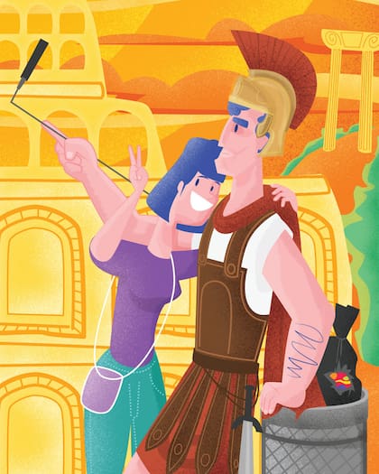 Me desayuno con la noticia: la empresa municipal que se encarga de la recolección de los residuos tiene una deuda de € 600 millones y dos de sus capos fueron detenidos en la Operación Mafia Capital (una ironía fellinesca en el país que bautizó sus redadas contra la corrupción como mani pulite: “manos limpias”). En la muy aséptica Europa del tren ultrarrápido y el canal Euronews, a Roma le dicen “el gran vertedero” y se burlan de que el paseante, cada mañana, pueda tropezar por la calle con pilas de bolsas repletas, sillas rotas, heladeras descompuestas, espejos partidos o inodoros cachados. Como la ciudad, la mugre es eterna. Desde el Trastevere hasta la Villa Borghese, a uno y otro lado del río, el caminante se siente perdido en el negocio de un ropavejero, como en una de esas ferias americanas que venden rezagos de espectáculos teatrales: aquella puerta descascarada pudo haber sobrevivido a una puesta de El decamerón y ese centurión parece el figurante de una obrita escolar dedicada a ensalzar la gloria de Julio César. A los pies del Coliseo, puro teatro: un Marco Antonio panzón con sandalias de plástico y armadura de gomaespuma espadea entre las bolsas de basura y posa con hidalguía imperial antes de pedir € 5 por la foto.