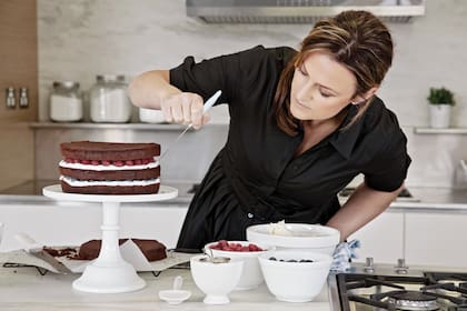 Aparece: jeans, suéter de hilo naranja flúo, descalza. Pero a la hora señalada, está lista para la producción en estudio: vestido de diseñador, brushing, maquillaje y tacos altísimos. Casi como una cámara rápida de una historia que la llevó desde sus comienzos, a los 19 años, a ser a los 25 la editora de cocina de la revista Marie Claire y, desde hace más de diez años, su propia marca.