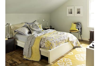 Si no te animás a aplicarlo en las paredes, una buena alternativa es sumar distintos tonos de amarillo a través de sábanas, acolchados, almohadones, mantes y otros accesorios. | Foto: Pinterest