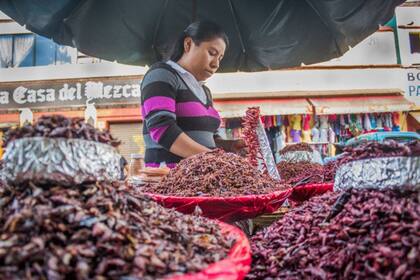 Varios de los kilogramos de chapulines atrapados por Lucio terminarán en los mercados de la ciudad de Oaxaca en manos de las "marchantas", como se las conoce tradicionalmente a las vendedoras de un sinfín de productos. Fermina García se dedica al comercio de estos insectos desde hace más de treinta años en el mercado Sánchez Pascuas. Originaria de la población de San Juan del Estado, vende los chapulines que su familia atrapó y otros más que provienen del esfuerzo de comunidades como Zaachila, Tlalixtac de Cabrera y Ocotlán. Ofrece tres tipos de saltamontes: pequeños, ideales para hacer salsa; medianos, para empanadas y tamales, y grandes, generalmente consumidos como entremés. Fermina cuenta ya con una clientela fija, integrada por dueños de restaurantes y de vecinos del barrio, pero también los vende a turistas nacionales y extranjeros. ¿Y los sigue incluyendo en su dieta a pesar de comerciarlos a diario? Dos o tres veces por semana, envueltos en tortilla y bañados en salsa.