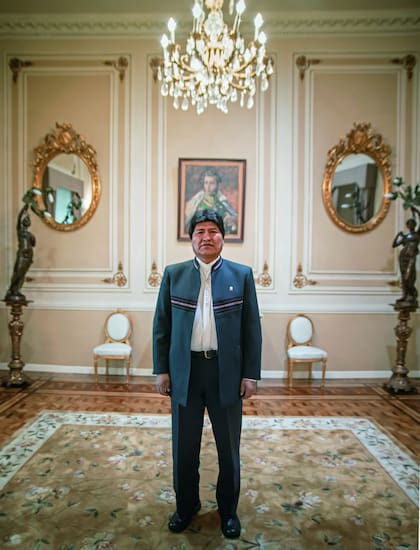 Ahora estamos en la sala de reuniones del Palacio Quemado. Detrás de la mirada de Evo flota un cuadro de dimensiones épicas de Simón Bolívar. Para hablar usa un trato simple, sin distancias, uno se da cuenta enseguida cuando te dice hermanito. Hijo de María Ayma y Dionisio Morales, dos agricultores y criadores de llama de origen aimara, nació el 26 de octubre de 1959 en la aldea rural de Isallavi, cerca de Orinoca, Oruro. Sumido en la desigualdad y la pobreza, como escribe en su último libro autobiográfico Mi vida, de Orinoca al Palacio Quemado. María era 15 años mayor que Dionisio. Ambos tuvieron siete hijos, pero se les murieron cuatro y sobrevivieron tres: Esther, Evo y Hugo tuvieron el privilegio de la vida. "En el pueblo donde nací no había médicos ni enfermeras. Si querías que te atendieran, tenías que ir caminando hasta Orinoca, durante tres o cuatro horas, para ir a una sala, pero si querías algo más complejo era un día de caminata. De adolescente tuve que ir hasta el hospital de Oruro. Cinco días, una semana caminé para poder curarme."