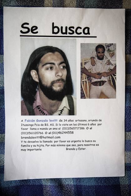 Ester no se preocupó durante el primer año posterior al inicio del viaje. Cuando Fabián se iba a las ferias de Córdoba o La Rioja, solía llamar cada tres o seis meses. No tenía celular ni casilla de mail, entonces su única vía de comunicación era el teléfono. Y como en ese momento su hermana se colgaba horas y horas hablando por teléfono y luego la cuenta era astronómica, Ester decidió dar de baja la línea. Así que, en principio, no les pareció extraño que no llamara. Pero, pasado un tiempo, se pusieron en alerta. Tanto tiempo sin noticias no era normal. Entonces viajaron a buscarlo, recorrieron San Luis y La Rioja, y empezaron a pegar ellas mismas volantes impresos con algunas de las pocas fotos que tenían de Fabián, en terminales de ómnibus, bares, baños y estaciones de servicio.
