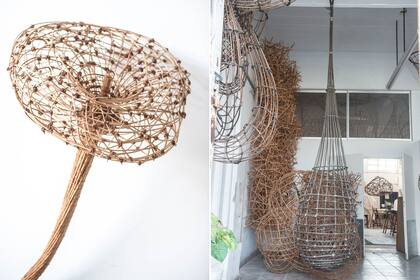 "Pienso los espacios como escénicos, dramáticos, espacios que no son sólo contenedores, sino parte del sentido". Claros ejemplos son sus monumentales esculturas en el hotel Hilton de Puerto Madero. O su nuevo proyecto: una muestra que tendrá como escenario un galpón de zinc donde guardará sus nubes de mimbre para cuando el cielo se quede vacío de nubes.