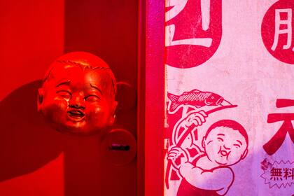 La parte china, más kitsch y extravagante, tiene un techo de 114 lámparas de papel. A los costados, un empapelado cubre las paredes con la imagen de un “niño gordo”. El ambiente japonés remite a un sauna húmedo de los 60. La idea inicial era incorporar tatamis a la ecuación, pero los cambiaron por mesas bajas con sillas de caño y cuero. El empapelado de este espacio es una reproducción de un cuadro de samurais desnudos creado por Eme Carranza, quien tuvo a su cargo el diseño estético de Niño Gordo.
