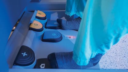Hoy el que opera en consola es el jefe de Robótica. Un gran beneficio del Da Vinci es que el cirujano opera sentado y apoyado sobre la consola y evita las cinco horas de trabajo parado, que influyen en el rendimiento. Le brinda una ergonomía ideal que además extiende la vida útil de los cirujanos, ya que la consola anula todos los posibles temblores de la mano, que en el caso de las cirugías laparoscópicas se ven magnificados. David ve todo diez veces más grande y en 3D. Dice que es "como estar dentro del paciente". Se acerca a la consola y se queda en medias, así descalzo es como siente mejor los pedales. Trabajará con manos y pies todo el tiempo.