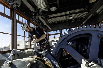 El ingeniero Sebastián Sarasqueta, perteneciente a la unidad de negocios Obras Electromecánicas de la empresa Eleprint, es, a todas luces, un cuadro corporativo. Y quizás a menudo lo reclamen las mesas kilométricas y lustrosas de los grandes despachos donde se definen emprendimientos millonarios. Sin embargo, el hombre habla con el fervor de un militante. Vestido de fajina (es decir, dispuesto a ensuciarse), bajo el casco reglamentario y un arnés más complejo que el de un alpinista, muestra con orgullo y detalle la sala de máquinas hecha a nuevo. Los motores, los engranajes originales, preservados con celo, las breves pantallas táctiles de comando que fechan la refundación de este monumento centenario en la era tecnológica: el puente transbordador Nicolás Avellaneda. De sus palabras se desprende que, al menos en este caso, la mística y el compromiso son tan importantes como los cálculos acerca de estructuras, materiales y presupuestos.