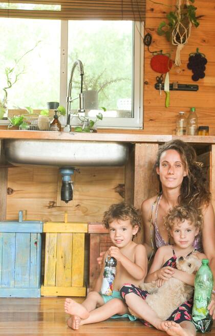 Otro aspecto que consideraron fue el agua. En un comienzo compraban bidones de agua y los recargaban. "Era muy engorroso ya que quedarnos sin agua era sumamente complicado. Hasta que Sebastián hizo una instalación de agua de lluvia, y desde entonces nos solucionó lo más importante del hogar".