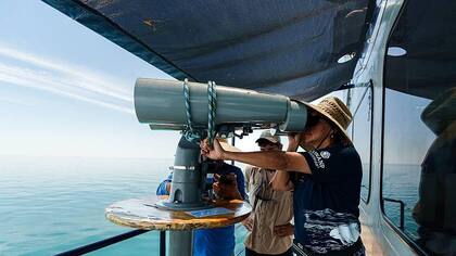 Durante los cruceros también se colectan fotografías del dorso. “A igual que un delfín y una ballena es diferente en cada individuo cuando presenta marcas o cicatrices”, señala Cárdenas. ¿Pero cómo avistar a menos de 10 vaquitas en cientos de kilómetros cuadrados de mar? Para saber dónde buscar, los cruceros de observación dependen de una tarea previa y vital que realizan Cárdenas y otros investigadores: el monitoreo acústico.