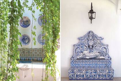 Uno de sus rincones favoritos es el patio azul. Un azul ultramar, el mismo que colorea Majorelle, inventado en África por su poder de ahuyentar a las moscas. Un azul intenso que, aunque frío, tiene una temperatura visual fuerte. Para que mantenga su vibración, lo retoca todos los años con los pigmentos originales traídos de España. El lugar suma agua para atraer a las aves, enredaderas y plantas como un marco verde, objetos de su autoría que exponen su alma de coleccionista, de recolector. Y también, es lugar de encuentro, un living exterior para compartir con la gente más querida.