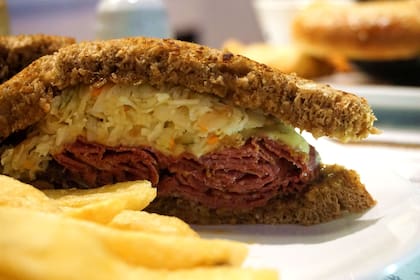 En Schwartz & Berg es posible probar un muy buen hot pastrami o un bagel con salmón ahumado, además de latkes, varenikes, hummus y cheesecakes, entre más opciones. Una especialidad de la casa es el Reuben, sándwich de origen incierto que a lo largo de su historia se convirtió en un clásico. Una teoría dice que lo inventó Arnold Reuben, dueño de Reuben's Delicatessen, casa icónica de Nueva York durante todo el siglo XX. "Es un sándwich típico de la zona de Brooklyn", afirma Jorge. "Acá hacemos todo casero: desde el corned beef hasta el pastrón, pasando por el pan, la mostaza, la mayonesa; no compramos nada procesado". Dos esponjosas rebanadas de pan de centeno y harina integral tostadas, corned beef (que elaboran con una receta similar a la del pastrón, pero con la parte más tierna del roast beef y menos tiempo de curado) y pastrón ahumados, generosa cantidad de coleslaw (ensalada de repollo blanco, zanahoria y un aderezo secreto de la casa) y una mezcla de mayonesa y mostaza. Ingredientes suficientes para un sándwich tan reconfortante como delicioso.