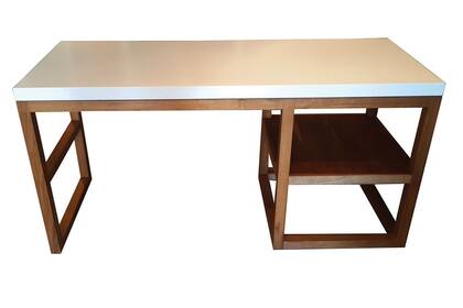 Escritorio "Berta" de 160x60x80cm en petiribí macizo con lustre natural y laqueado blanco satinado, $10.900 (Destila).