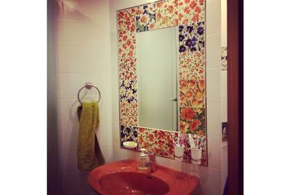 Azulejos con motivos florales enmarcan este espejo empotrado. El patchwork del marco se convierte en el protagonista de este baño. | Foto: LiveJournal.