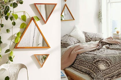 Triangular | Con marcos de 3cm en madera de marupá y lustre a elección, los espejos de Alaska Kids inspirados en pirámides y montañas vienen en tres medidas. Son ideales para combinar y armar una composición sobre la pared o apoyar sobre una mesa, cómoda o escritorio.