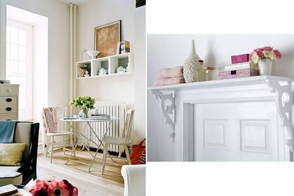 Este es otro ejemplo de espacios muertos que se pueden aprovechar. Por lo general arriba de la calefacción no ponemos nada, pero en este caso el estante alto se puede ver bien y ser muy útil, ya que con el caloventor abajo garantizamos que nadie se lo lleve por delante. Fotos: