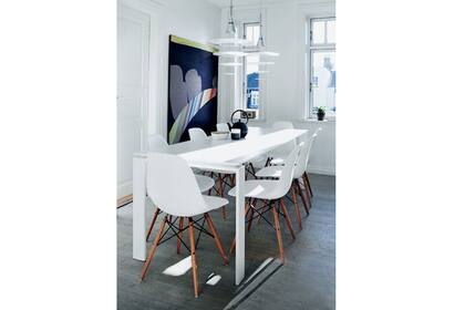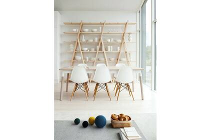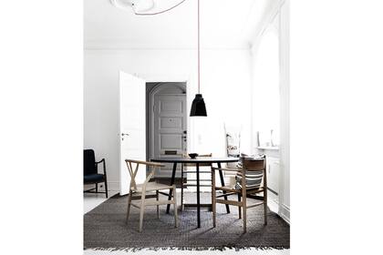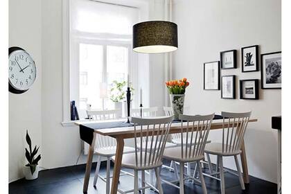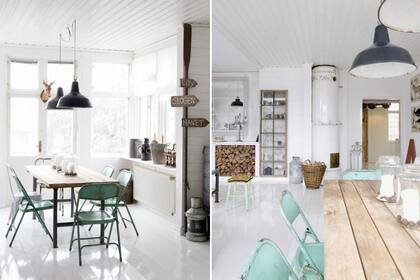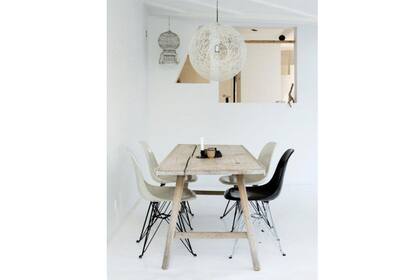 Una vez más, contrastes pálidos. Aquí, la propuesta incluye una mesa redonda de aspecto livinano combinada con sillas de distintos modelos. | Foto: