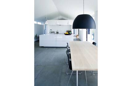 Simple calidez: para suavizar el contraste con el negro, el clásico blanco fue reemplazado por un tono tiza. | Foto: