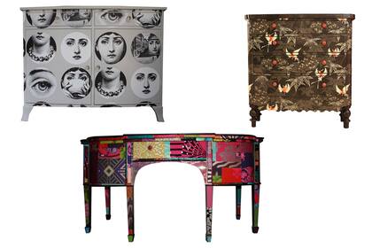 ** Si la idea es intervenir dicho elemento, las posibilidades son amplias. Por ejemplo, sobre un mueble antiguo se pueden dar detalles de color con pintura o papel. Como en los referentes de la foto.