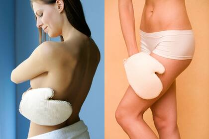 - Para exfoliar el cuerpo, también se pueden usar accesorios, que ayudan a lograr un efecto peeling natural, como la loofah o lufa (esponja vegetal, extraída de una planta trepadora tropical), o el kassa (guante de crespón negro utilizado en los hammams).