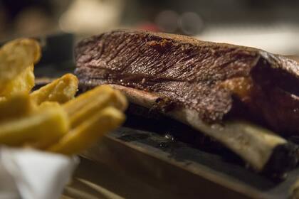 El plato estrella es el espectacular pastrón con hueso, de costillar de novillo pampeano, alimentado a pastura, curado y ahumado en frío, luego cocido al vacío a baja temperatura ($2500). Para compartir, hay una lista de platos chicos que incluyen los bien conocidos falafel, hummus y babaganoush (240-300), además de pesca ahumada (solo pescados blancos) y verduras de estación a las brasas (300).