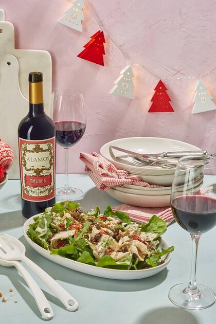 A la hora de pensar en la mesa tradicional de las fiestas, hay sabores que están siempre presente. Por un lado, un Malbec, la gran cepa nacional que nos da fama en el mundo entero. Por el otro, el Vitel Tonné, ese plato nacido en el Piamonte que llegó a nuestras tierras en los barcos de la inmigración. Esta vez proponemos una reversión del clásico italiano: una Ensalada de pollo tonné. Y para acompañar, uno de los grandes best sellers del mercado local, el Alamos Malbec, reconocido en Argentina y en el mundo. Un vino que pasó seis meses en barricas, con una fruta roja y amable para acompañar los sabores frescos de la ensalada.
