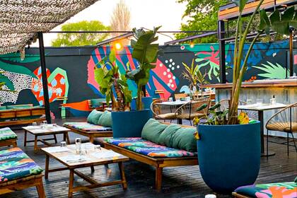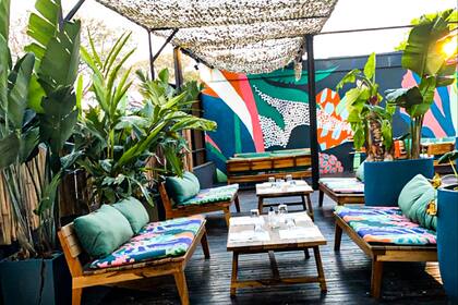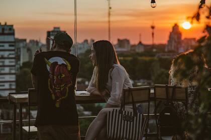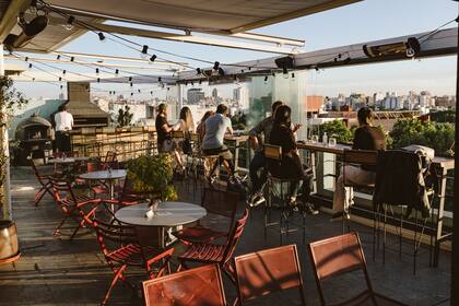 Una de las terrazas más concurridas antes de la cuarentena era The rooftop, la terraza del hotel Selina. En estos tiempos de protocolo estricto (un cartel en la pared te avisa que si podés leerlo estás demasiado cerca) las dimensiones de la terraza la convierten en un sitio exclusivo donde si no hay reserva no hay opción de disfrutar la caída del sol sobre el verde de las copas de los árboles que predominan en el barrio.