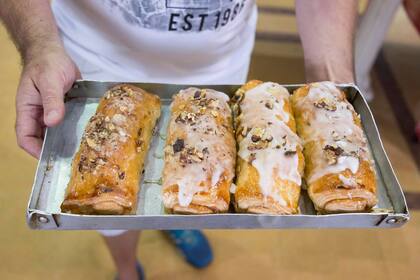 Ensaimadas, sfogliatella y medialunas son las estrellas de Flores Porteñas, la panadería de “suprema calidad”, según reza su antiguo slogan. Y, desde ya, una amplia variedad de panes y tortas, entre las que se encuentra un lemon pie de receta exclusiva. “En esto, cada maestro enseña con su librito. Podés ponerle los mismos ingredientes sobre la mesa a cinco panaderos, y cada uno te va a hacer una receta diferente”, explica Messina.