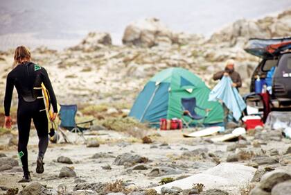 En Centroamérica, dejábamos la carpa a las cinco y cuarto de la mañana. Hacíamos mate o café instantáneo. Uno iba a surfear, el otro filmaba. Dos horas cada uno, todo el día en el agua.