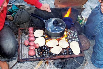 6. Para ahorrar, intentábamos prender la cocinita lo menos posible. El tanque, de un litro, duraba una semana. Lo usábamos a la noche. Durante el día, en el desierto comíamos frío, pescábamos mucho. Buscábamos mejillones y caracoles en las rocas, los hervíamos o los cocinábamos en la parrilla.