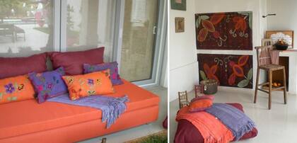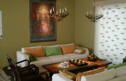 En este espacio, el impacto de color lo dan los muebles con un tono de fondo que quizás no nos animaríamos a utilizar en nuestras casas. De todos modos, los muebles y textiles ayudan a "levantar" el ambiente.