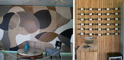 A la hora de aprovechar recortes de madera, ¿qué mejor que estas muestras? También podemos recurrir a estas ideas cuando tenemos una pared con humedad y queremos disimularla sin recurrir al típico machimbre o a cerámicos. Un consejo es dejar siempre un espacio entre el muro y el revestimiento.